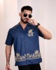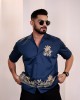 Navy blue & Beige opaque casual shirt for men